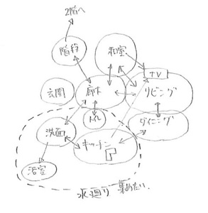 以前に書いたプランは、要望を引き出す為の「たたき台」なので、わすれて、ゾーニングに集中します。